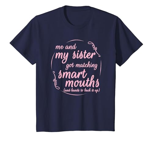 Me and My Sister Got Matching Smart Mouths Funny Sisters T-Shirt, Youth, Navy Blue, Medium
