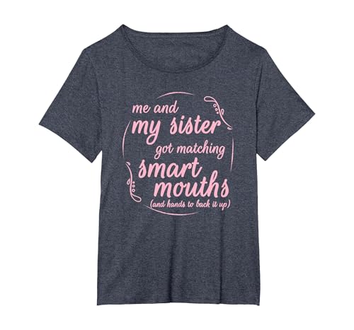 Me and My Sister Got Matching Smart Mouths Funny Sisters T-Shirt, Women's Plus, Heather Blue, 4X