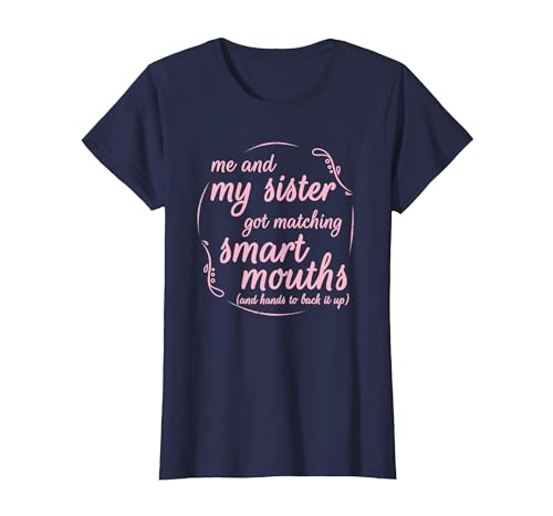 Me and My Sister Got Matching Smart Mouths Funny Sisters T-Shirt, Women, Navy Blue, X-Small