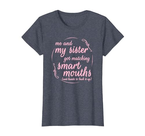 Me and My Sister Got Matching Smart Mouths Funny Sisters T-Shirt, Women, Heather Blue, Medium