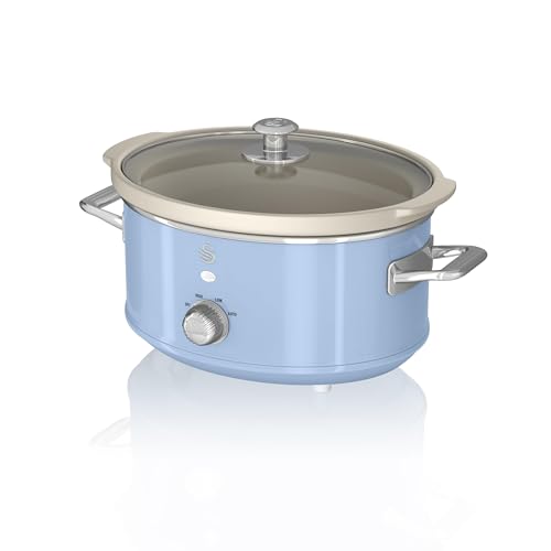 Swan SF17021BLN Retro Slow Cooker with 3 Temperature Settings, Removable Dishwasher Safe Ceramic Pot and Glass Lid, 3.5L, Blue