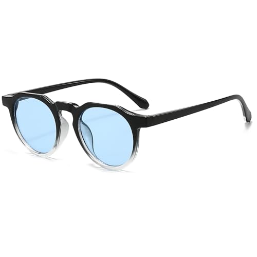 YOJUED Retro Sunglasses Yellow Gradient Glasses Vintage Tinted Sunglasses for Women Men (Transparent Blue)
