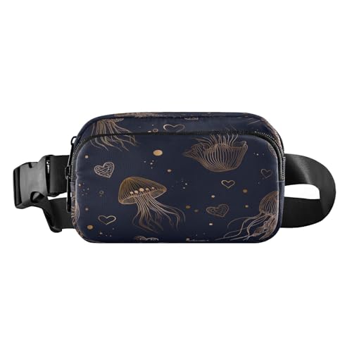 Dreamy Jellyfish Gold Blue Valentines Stylish Waist Pack Crossbody Bag for small businessman Multipurpose with Adjustable Strap for Travel Shopping Running para la cintura de hombre