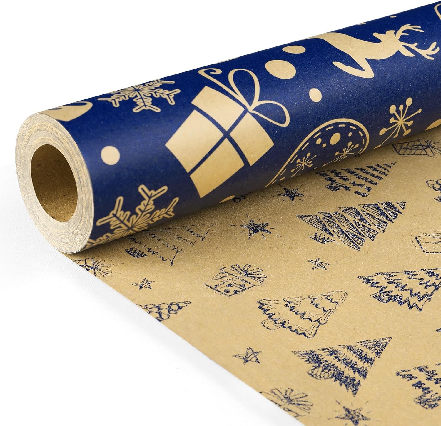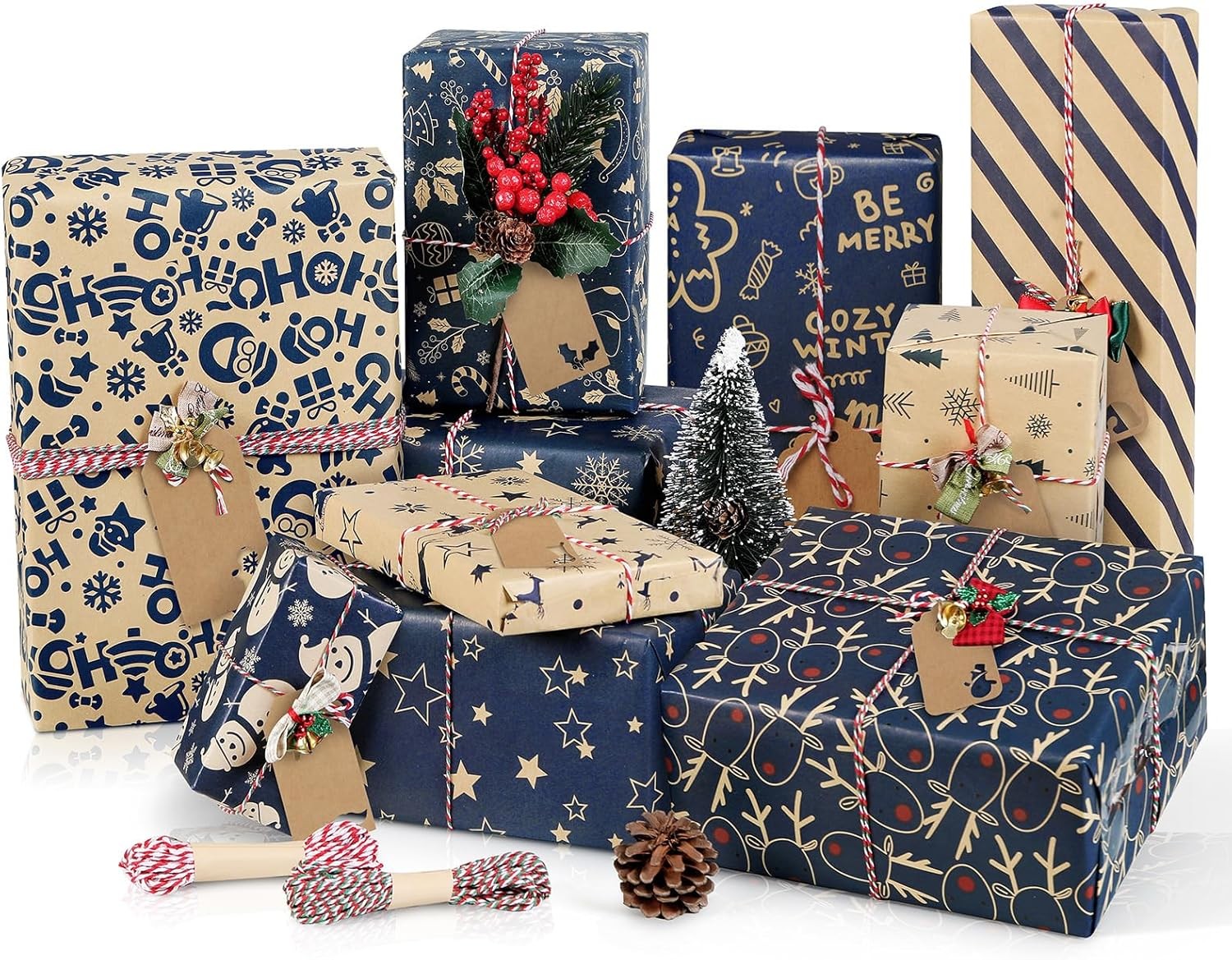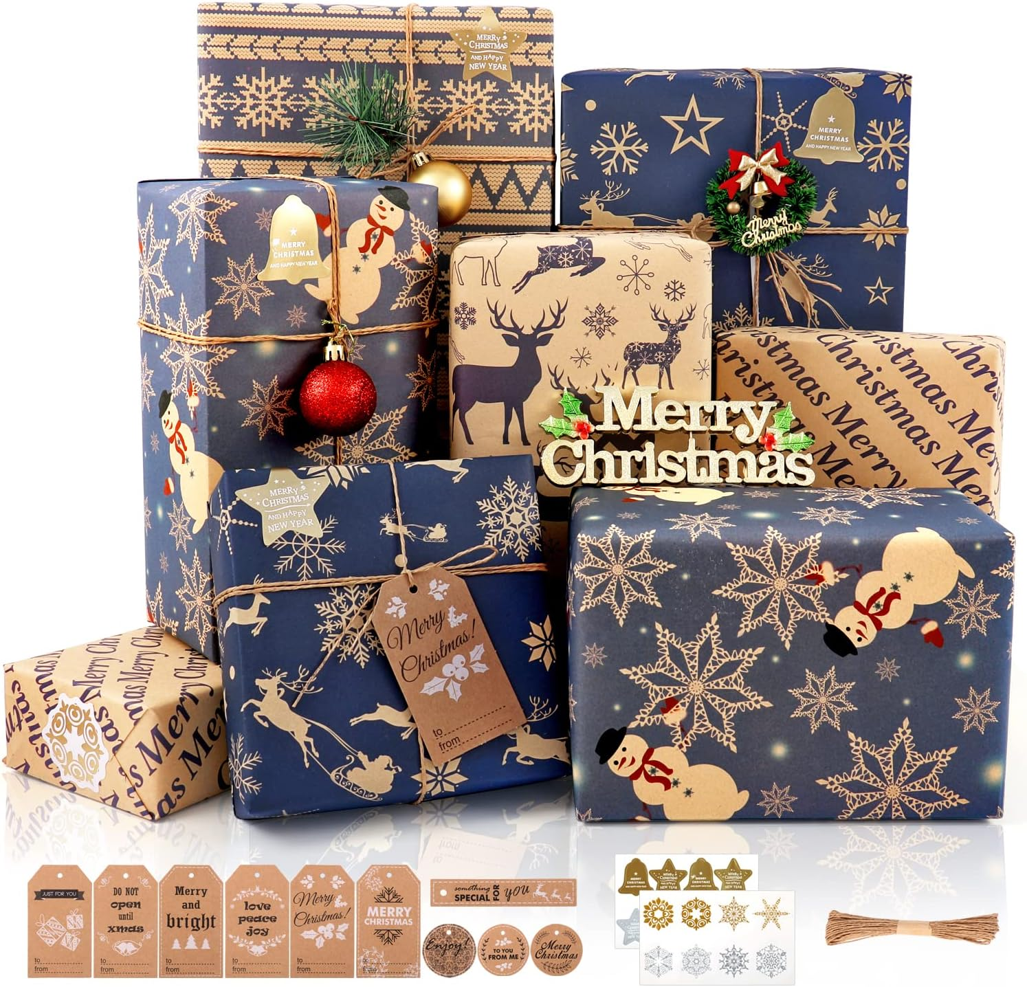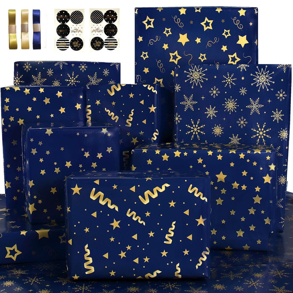 Christmas Wrapping Paper Sheets, Xmas Gifts Wrap Paper Set, 10 Kraft Navy Blue