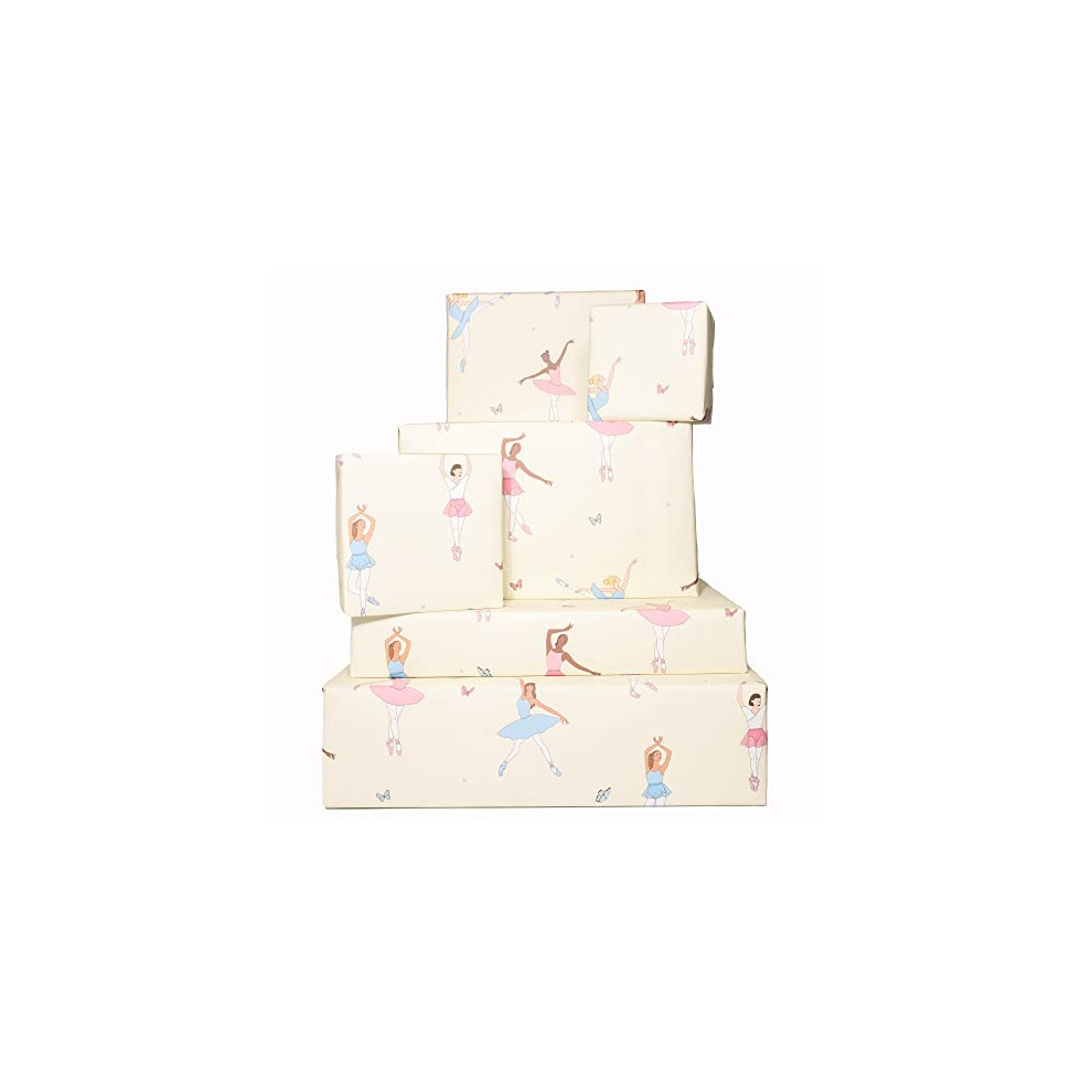 - Ballerina Gift Wrap - 6 Sheets of Cute Wrapping Paper for Girls - Pink Blue Birthday Giftwrap - Pastel Butterflies for Kids - Pretty Ballet Dancers