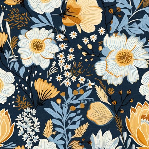 ICYEHAO Blue Floral Wallpaper, 44 x 300 cm Self Adhesive Wallpaper Blue Beige Flower Leaf Plants Boho Wall Paper Self Adhesive Furniture Wrap for Living Room,Bathroom,Cabinets