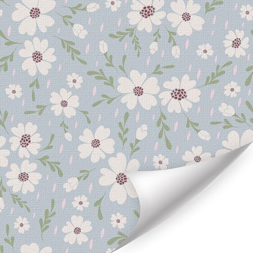 ANHUIB White Flower Wallpaper Self Adhesive Peel and Stick Floral Wallpaper Blue Contact Paper 44x300cm Boho Botanical Flowers Wall Decal Plant Pattern Vinyl Wall Wrap for Bedroom Bathroom Living Room