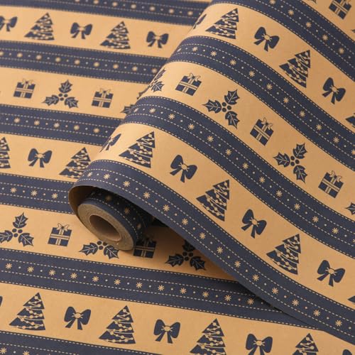 ZJHiome Christmas Wrapping Paper Roll 43cm*10m Xmas Wrapping Paper Recyclable Kraft Paper for Xmas New Year Winter Holidays Gifts Wrap(Blue Tree)