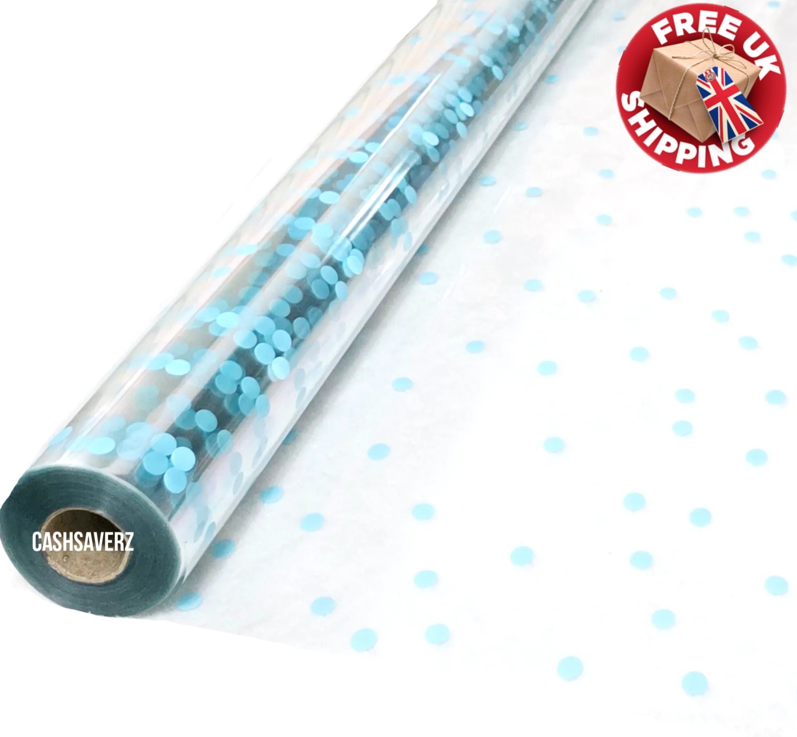 6 Meter Blue Dots See Through Cellophane Wrapping Gift Paper | Hampers Wrap
