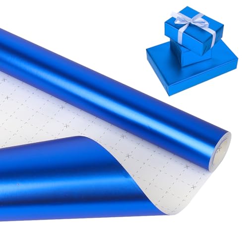 HBell Blue Wrapping Paper Roll, 43cm x 10m Pearly-Lustre Gift Wrap Paper,Dual-Sided Wrapping Paper for Birthday,Wedding,Baby Shower,Christmas,Party,Valentine's Day