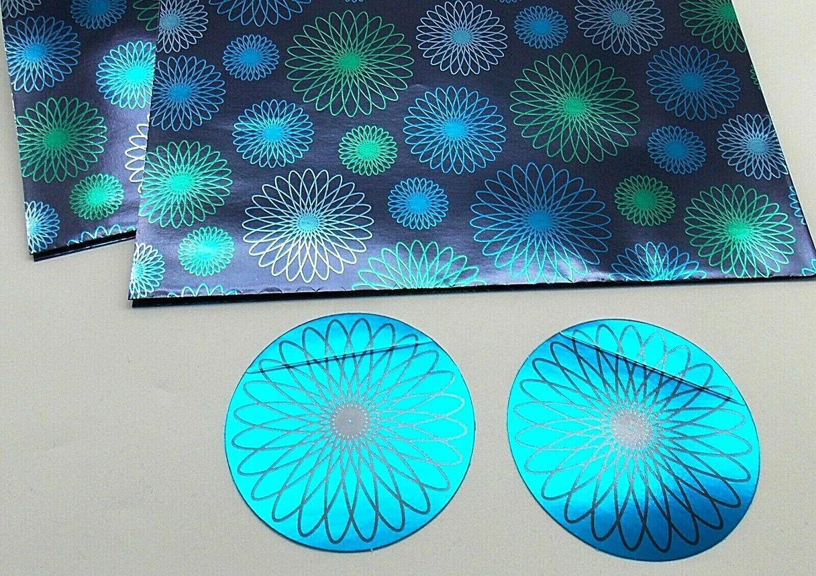 Spirograph Gift Wrap Blue Wrapping Paper 2 Sheets 2 Tags Geometric Retro Design