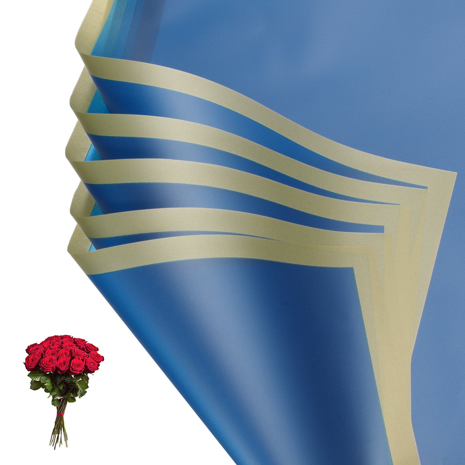 20 Sheets Flower Wrapping Paper Gold Edge Waterproof Bouquet Paper Wrap Blue