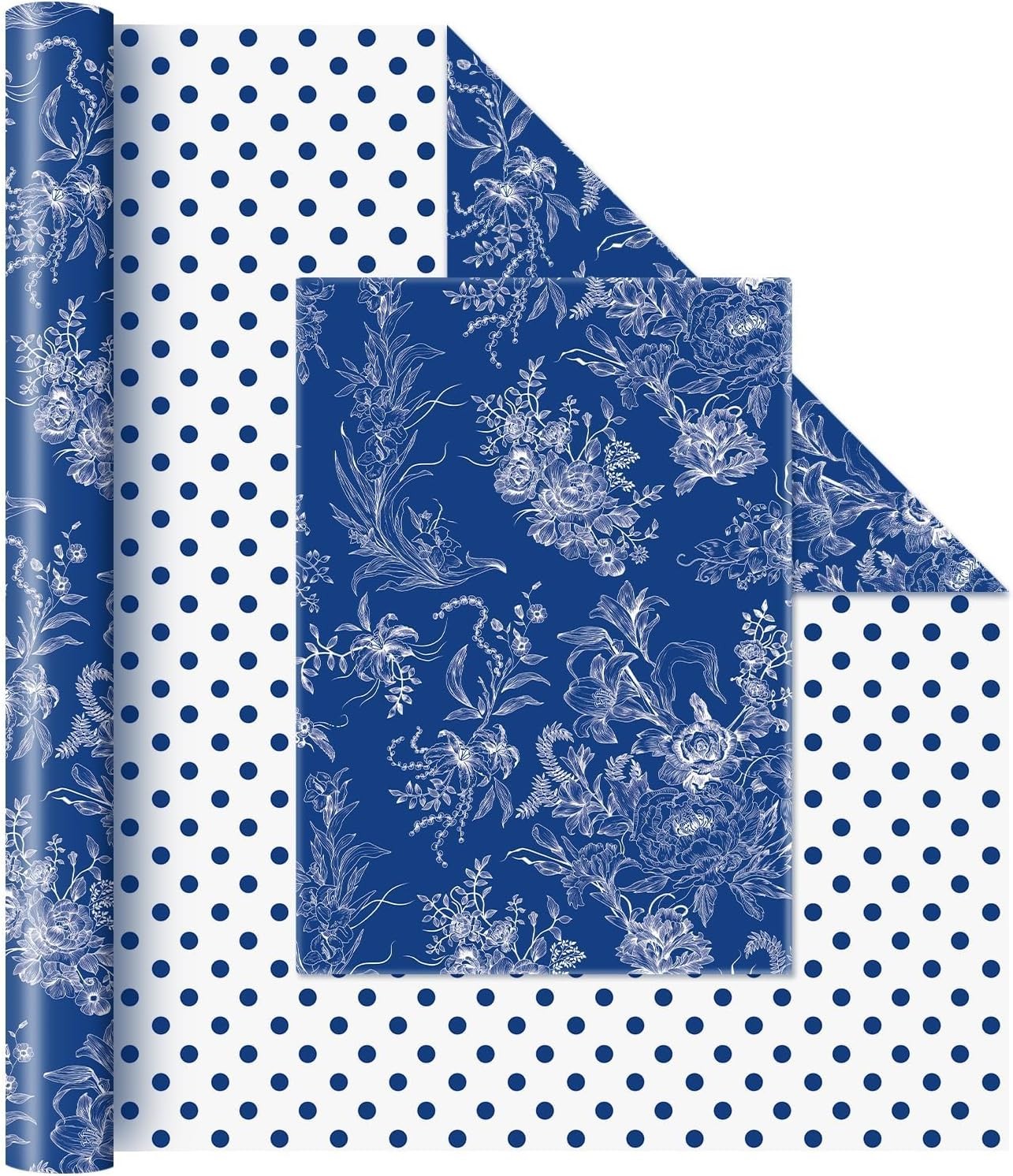 20 Sheets Flower Wrapping Paper Double Sided Waterproof Paper Wrap Dark Blue