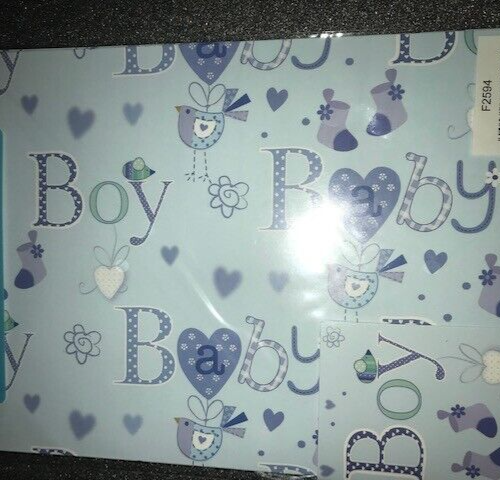BABY BOY BLUE BIRTH WRAP WRAPPING PAPER 2 SHEETS GIFTWRAP WITH TAG 50*70CM se