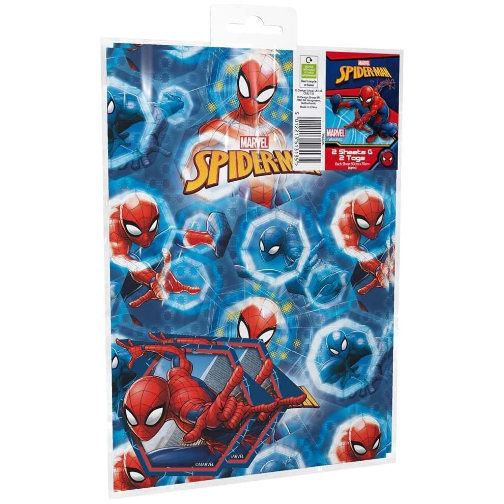 Marve Spiderman Wrapping Paper 2 sheets Of Gift Wrap And 2 Tags, blue,...