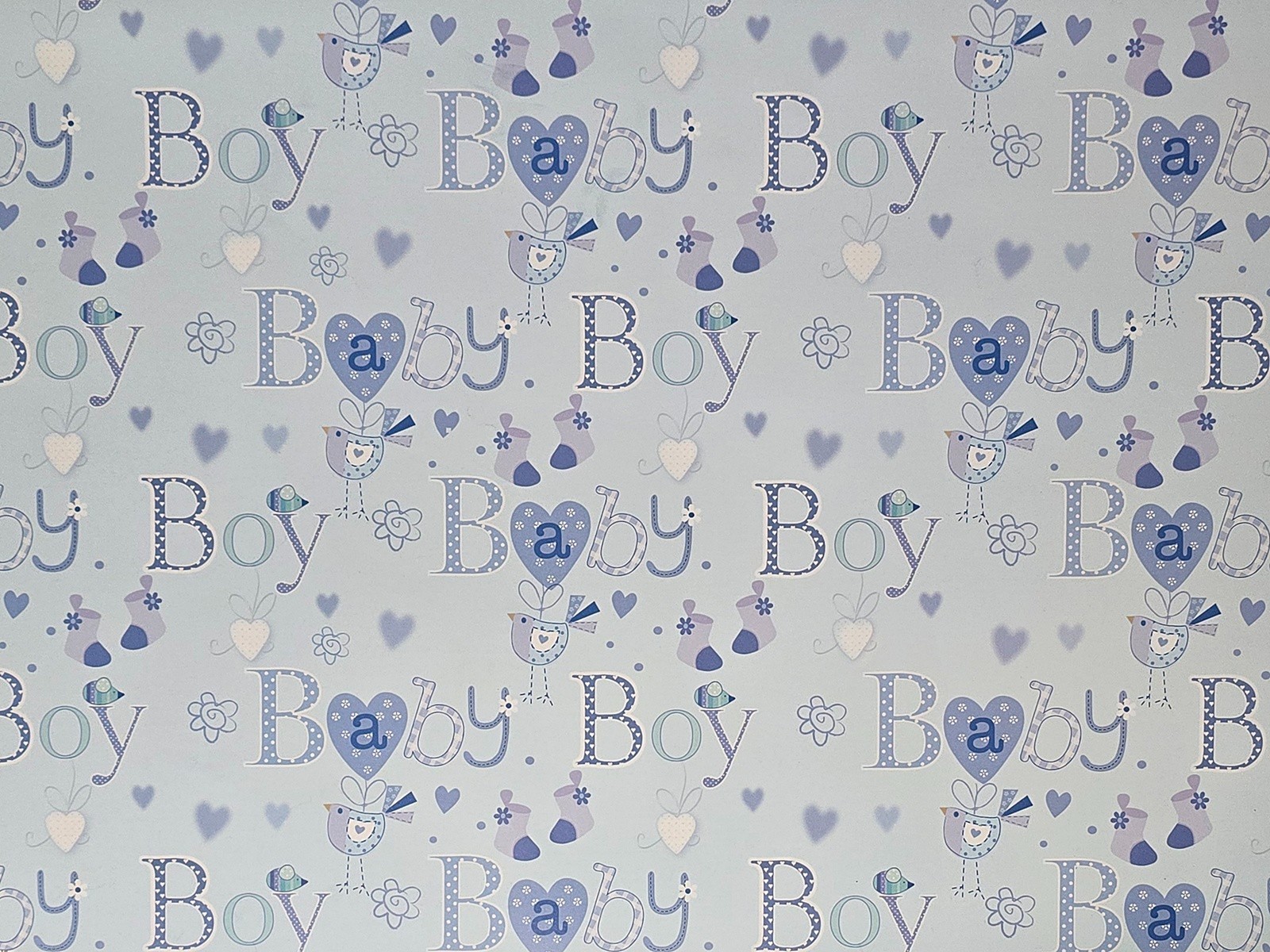 2 x Sheets of Gift Wrap Wrapping Paper Baby Boy Light Blue Cute Birds Hearts