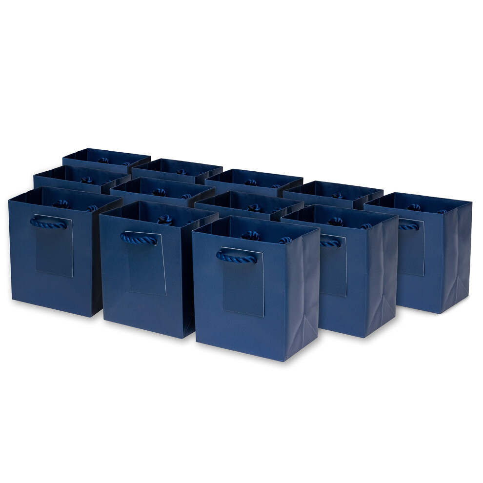 Mini Gift Bags - 12 Pack Navy Royal Blue Extra Small Gift Bags with Handles Paper Totes for Christmas & Holiday Gift Wrap Birthday Party Favor Bags