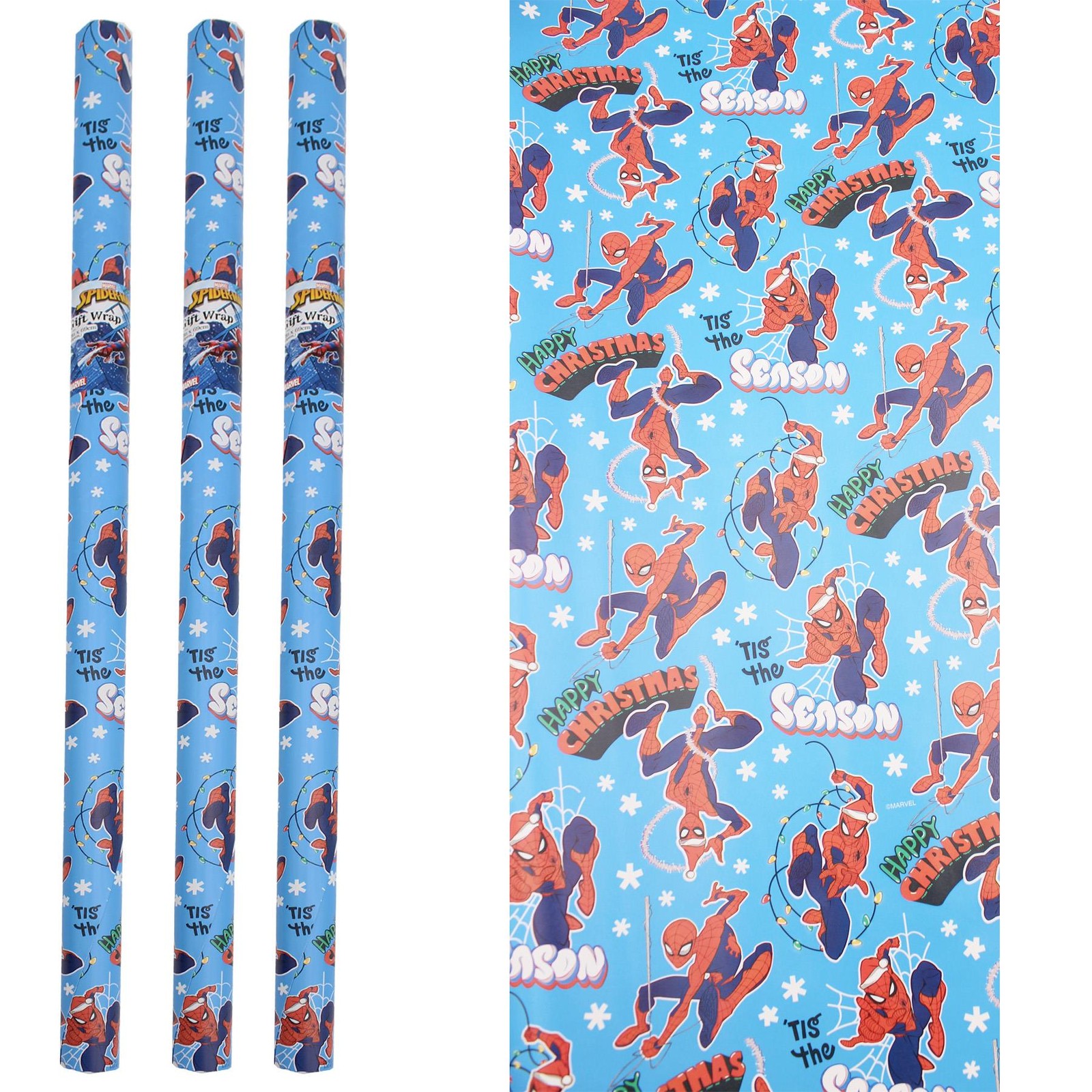 Spiderman Christmas Wrapping Paper 3 x 2M Rolls Gift Wrap Light Blue