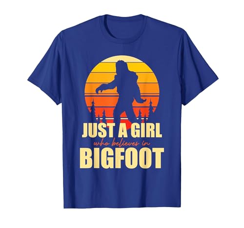 Retro Yeti Sasquatch Just A Girl Who Believes in Bigfoot T-Shirt, Youth, Royal Blue, X-Small