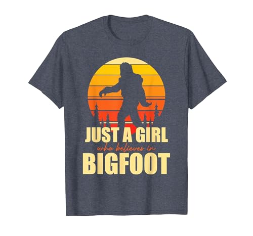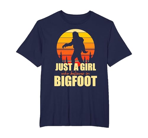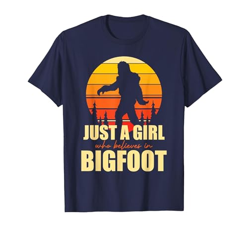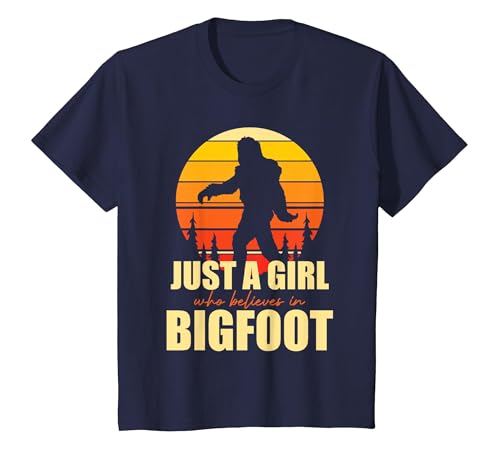 Retro Yeti Sasquatch Just A Girl Who Believes in Bigfoot T-Shirt, Youth, Navy Blue, X-Small