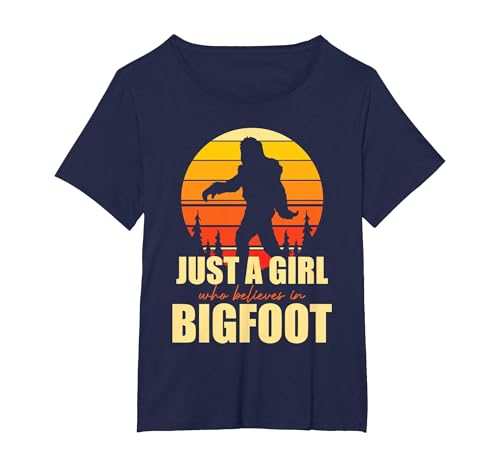Retro Yeti Sasquatch Just A Girl Who Believes in Bigfoot T-Shirt, Women's Plus, Navy Blue, 6X
