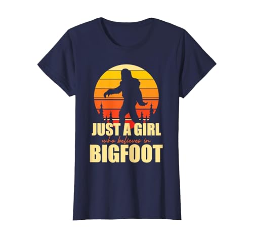 Retro Yeti Sasquatch Just A Girl Who Believes in Bigfoot T-Shirt, Women, Navy Blue, X-Small