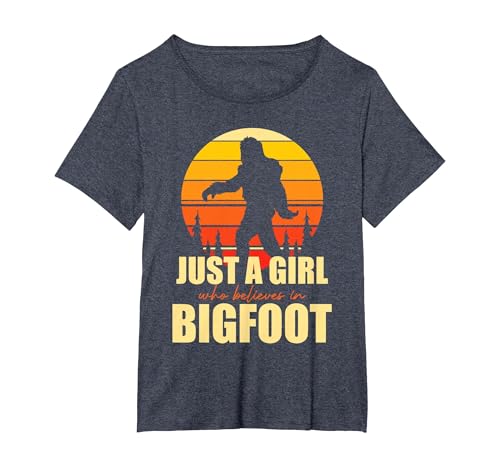 Retro Yeti Sasquatch Just A Girl Who Believes in Bigfoot T-Shirt, Women's Plus, Heather Blue, 5X