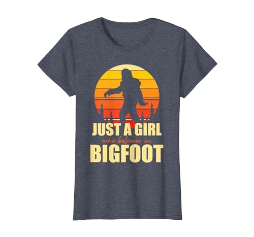 Retro Yeti Sasquatch Just A Girl Who Believes in Bigfoot T-Shirt, Women, Heather Blue, X-Small