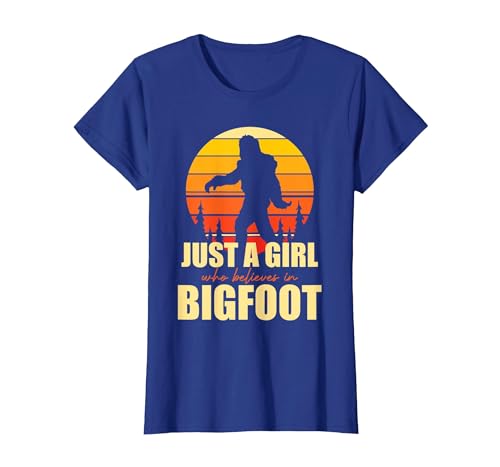 Retro Yeti Sasquatch Just A Girl Who Believes in Bigfoot T-Shirt, Women, Royal Blue, X-Small