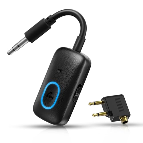 ORIA Bluetooth 5.4 Transmitter Receiver, Portable Wireless Airplane Headphone Adapter, Noise Reduction, Hands-Free Calling, Plug and Play 3.5mm AUX Bluetooth Adapter for TV, Plane, Car, Home Stereo