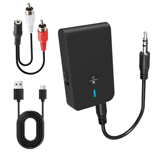 Bluetooth 5.3 Transmitter Receiver, Wireless Audio Adapter for Home Audio Car Stereo with 3.5mm RCA Jack 2-in-1 Wireless Aux Bluetooth Adapter for TV, Airplane, Headphone, Airpods, Speaker, Car
