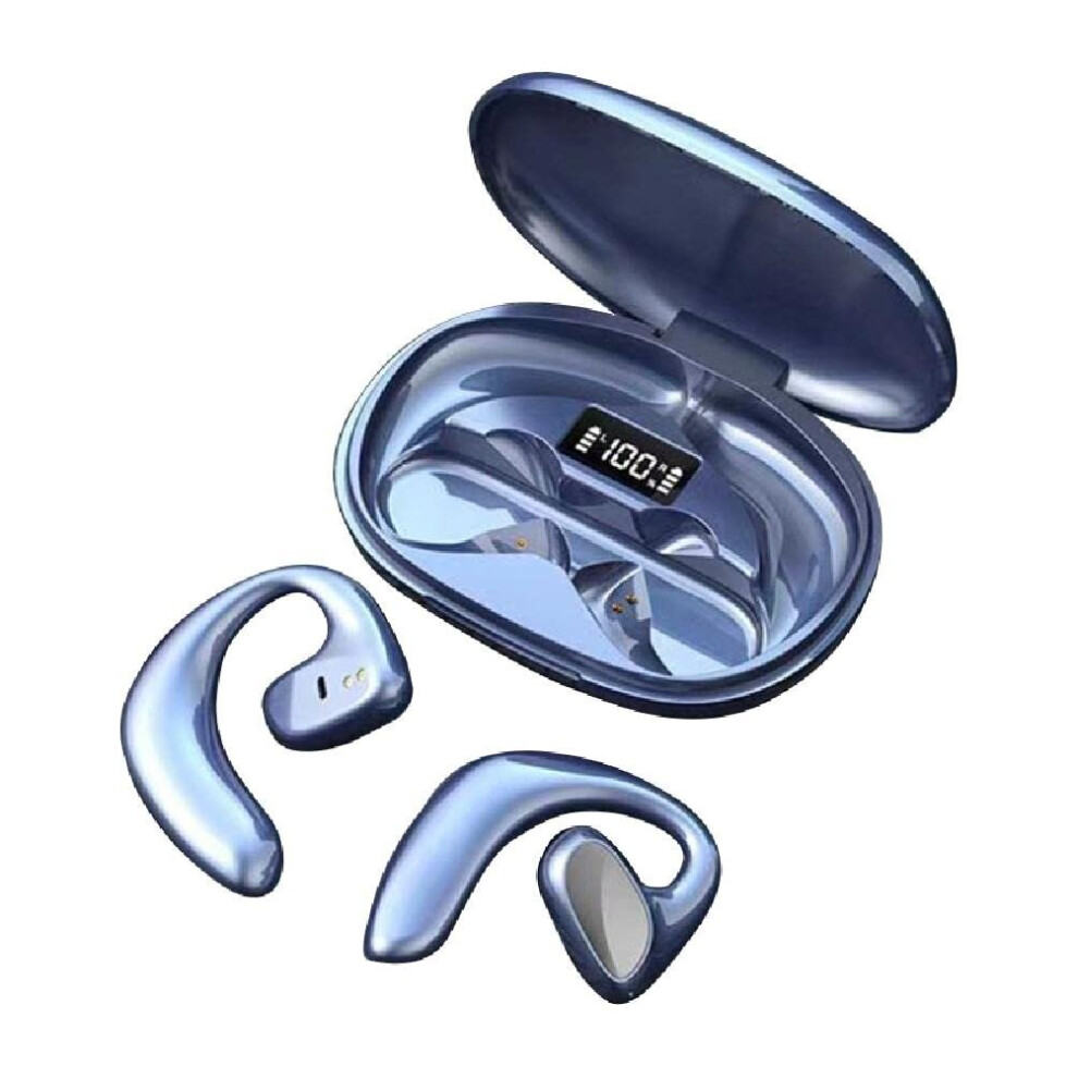 Bluetooth 5.3 Bone Conduction Headphones w/ LED Display Blue IPX5