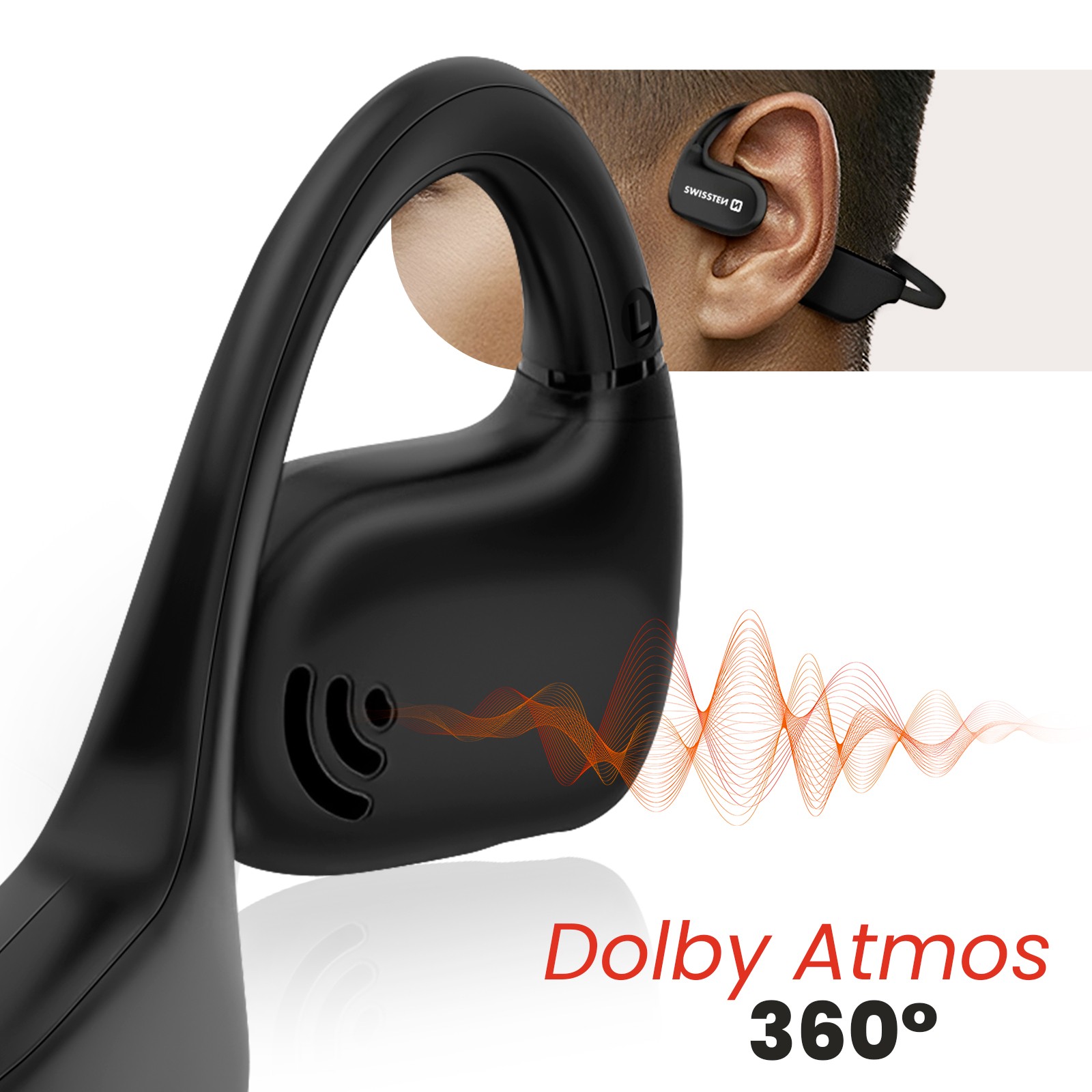 Swissten Bluetooth Bone Conduction Sports Headphones 10-Hour Battery Life, Black