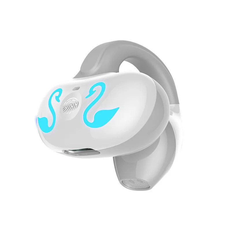 (a-White) Olaf Single Ear Clip Bluetooth Earphones Wireless Bone Conduction Headphones Non In Ear Painless Stereo TWS Earbuds With Mic