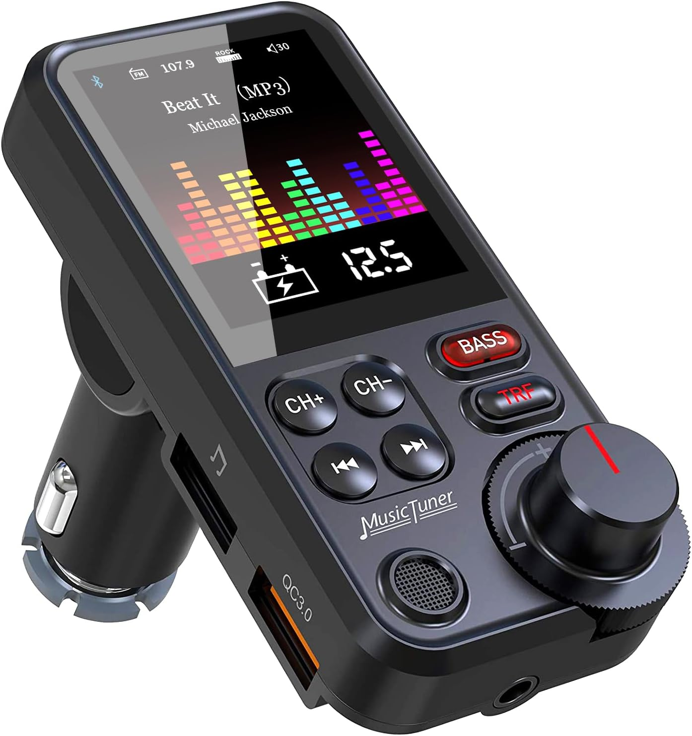 Bluetooth FM Transmitter, Car Adapter for Music, Hands Free Kit with 1.8" Screen