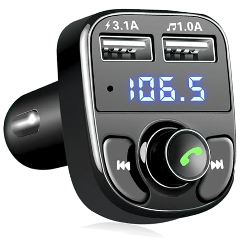 Mohard Bluetooth Car Adapter, Bluetooth FM Transmitter for Car MP3 Player FM Transmitter, Multichannel Amplifier, Hands-Free Calling, Dual USB Ports (5V/2.4A & 1A), Support TF Card & USB Flash Drive