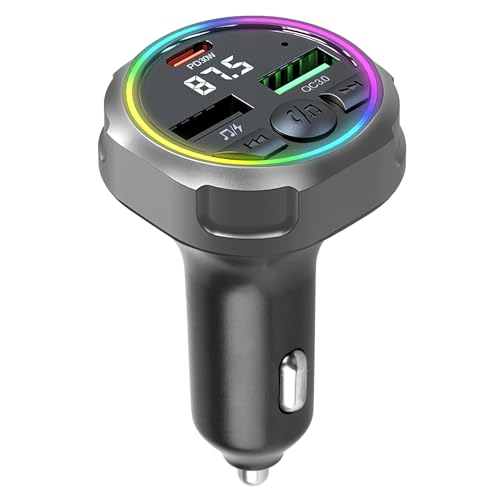 GizmoVine Bluetooth Car Adapter, FM Transmitter, Wireless Hands Free Phone Kit, Radio Receiver Audio Blue Tooth Adaptor, Usb C QC PD 30W Fast Charger for 12V Cigarette Lighter, U Disk MP3 Music Player