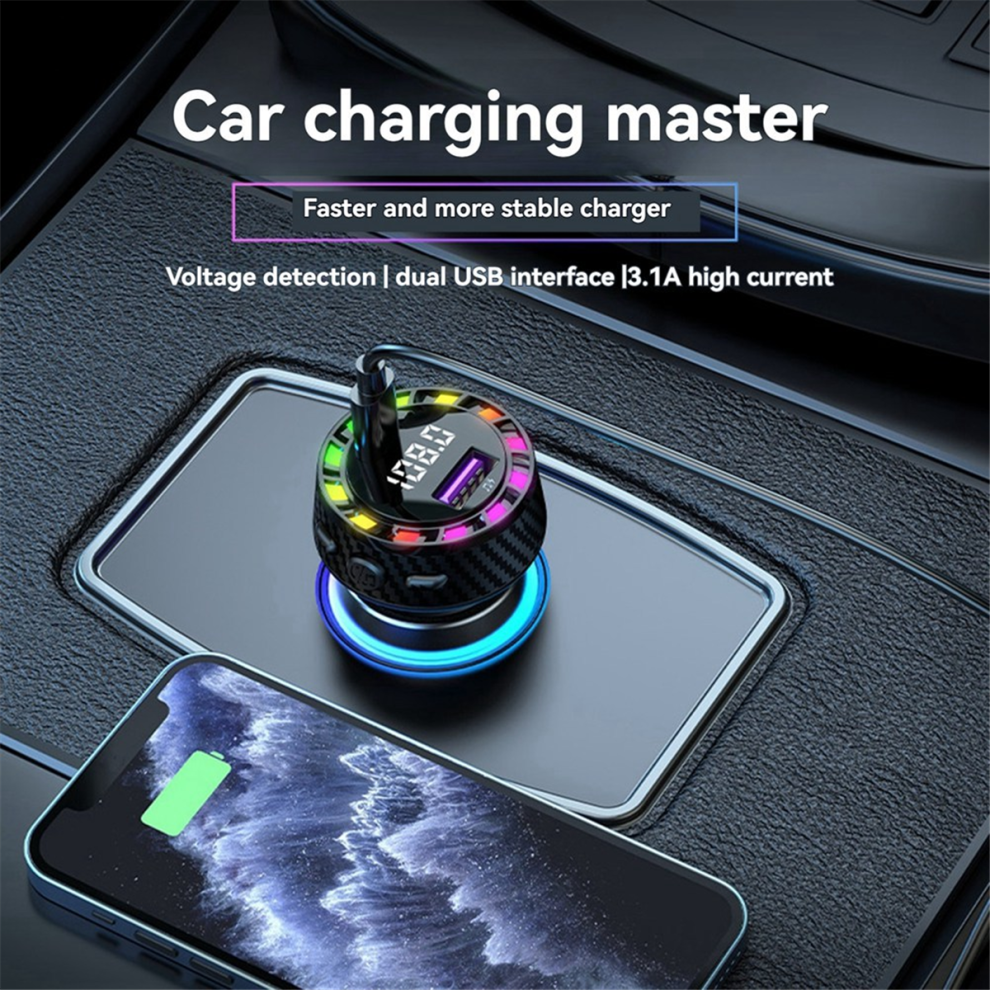 Carbon Fiber Bluetooth Car Charger 2USB PD20W/FM Transmitter LED Light