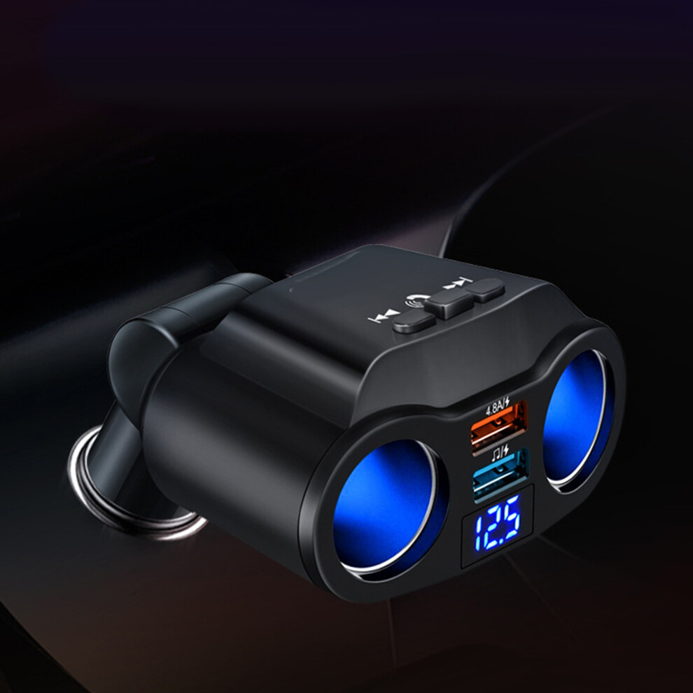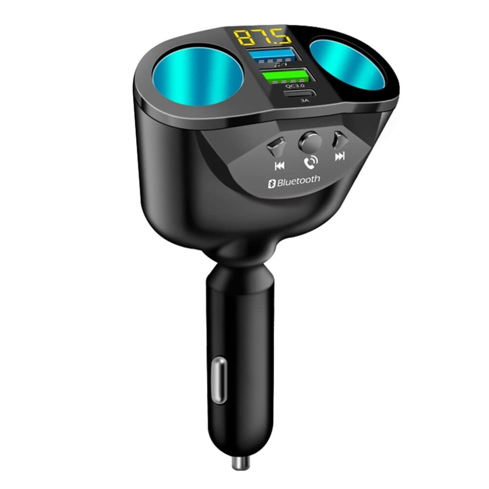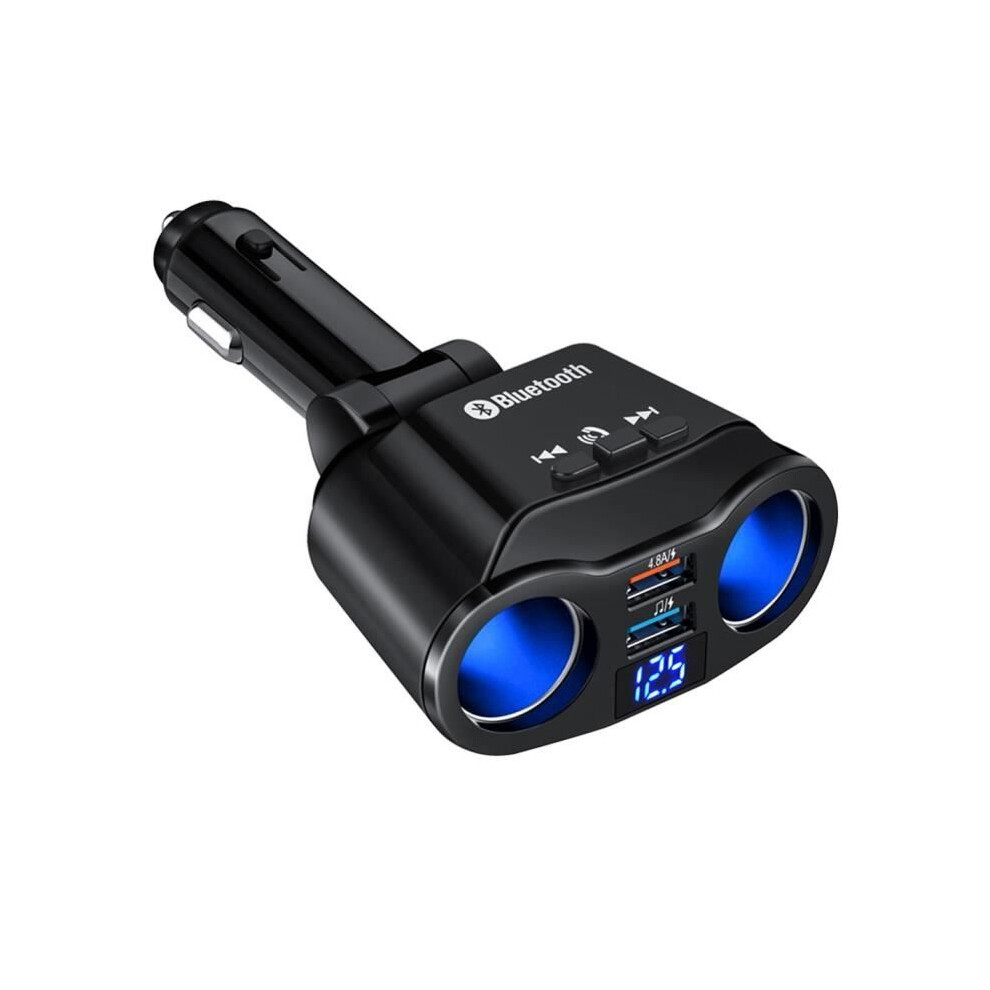 Interior Auto Accessories, 90W 12V-24V Cigarette Lighter, Bluetooth, USB Car Charger, 2 Sockets with Voltage Display