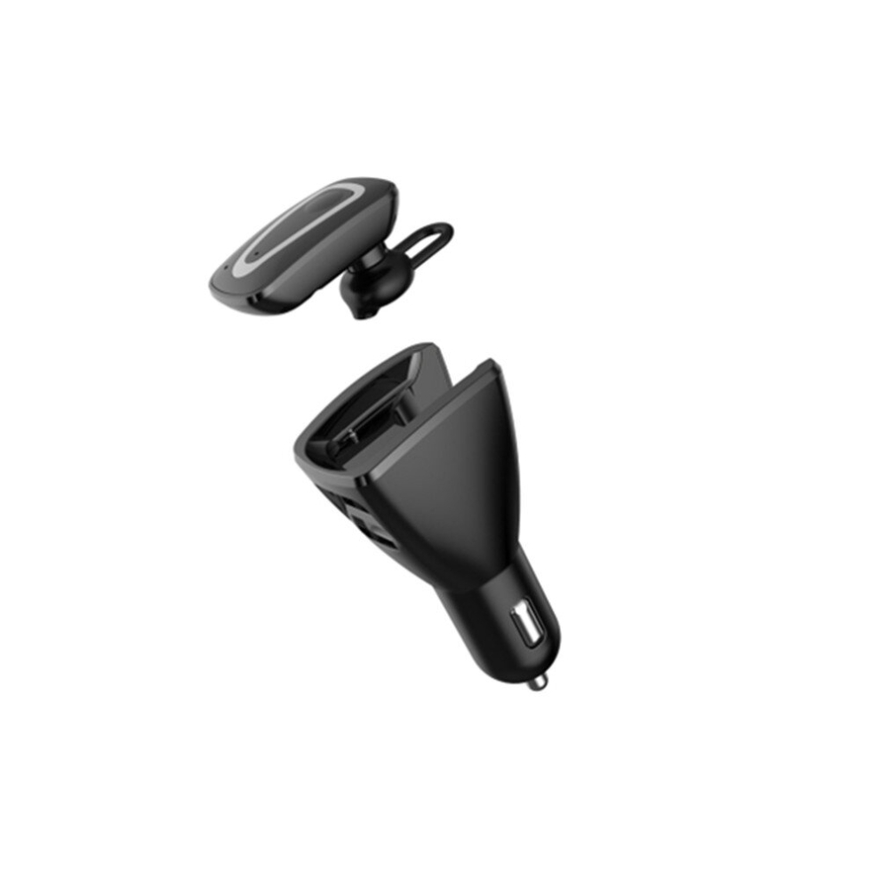2 in 1 Bluetooth Earphone Car Charger, Support Hands-free Call & Smartphones Double USB Charging Function (Black)