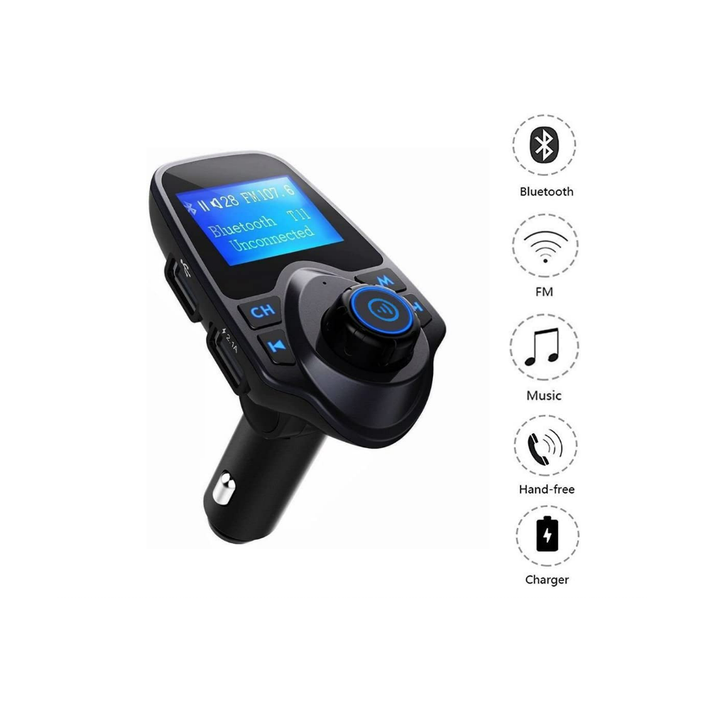 Bluetooth FM Transmitter, Car Charger, 2 USB, Hands-free T11 (Black)