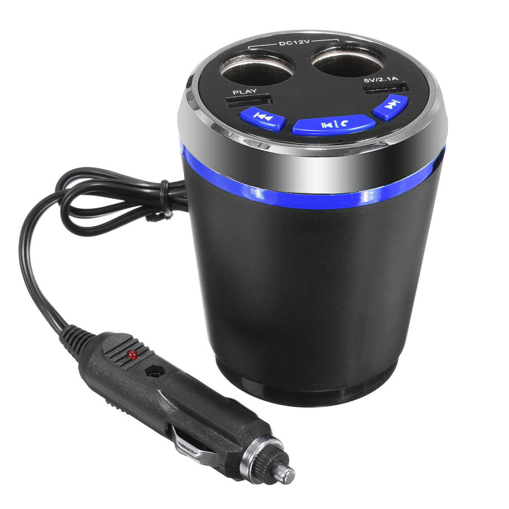 Car bluetooth Cup Charger Hands Free Car Kit 2 Port USB MP3 Player BLUE COLOR