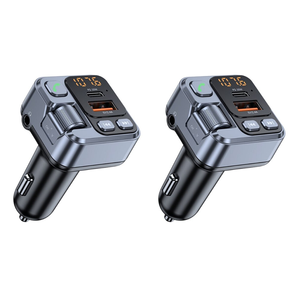2PCS Car Bluetooth FM Transmitter Car Charger 30W PD USB-C Fast Charger for Wireless Hands Free Call MP3 Player