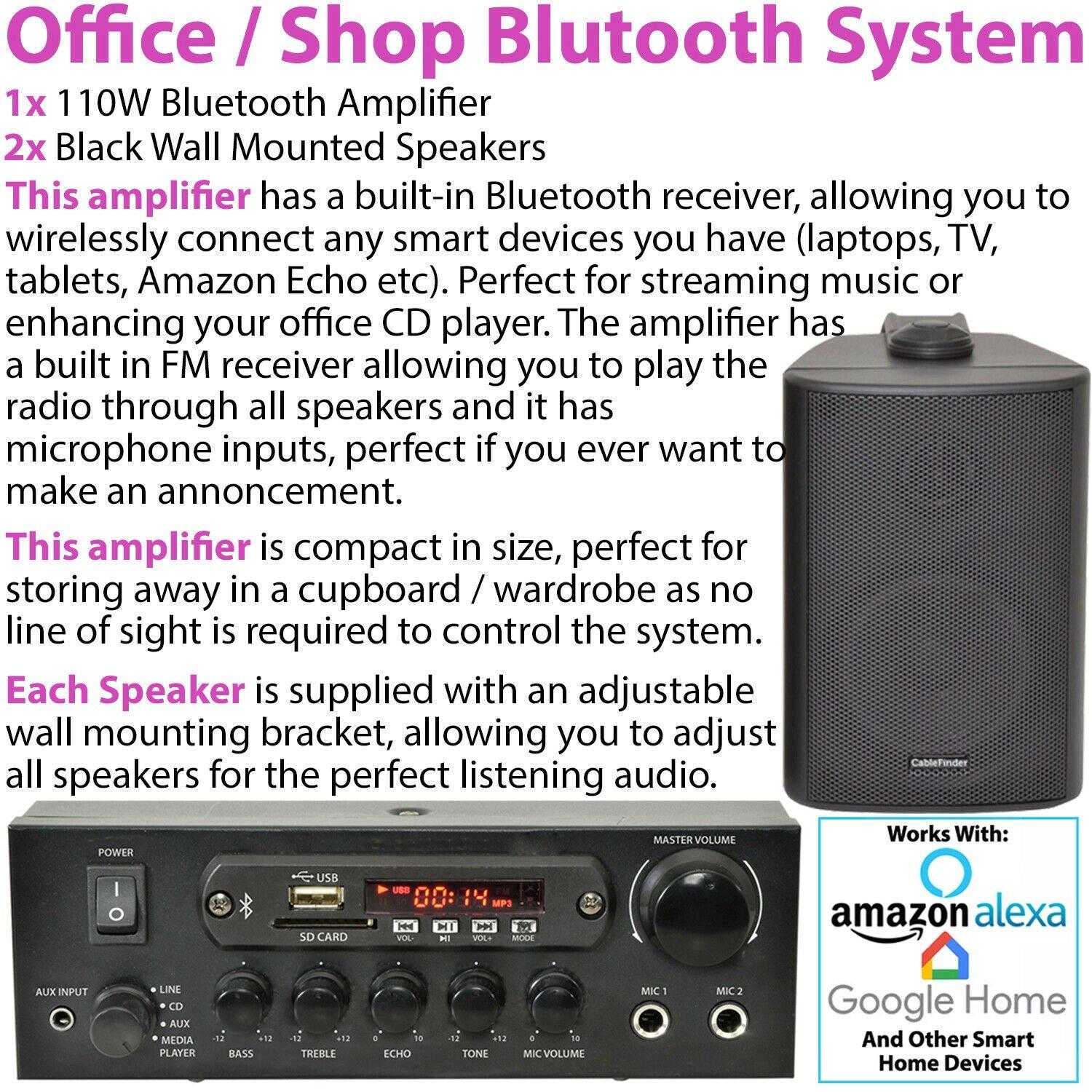 Shop Bluetooth Music System 2x Black Speakers & 110W Amp Background FM Radio