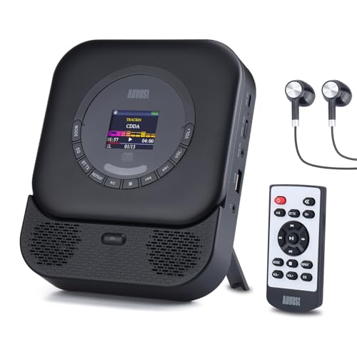 August SE15B Portable CD Player for Home, Car & Travel - Bluetooth 5.3, USB Port, 3.5mm AUX In/Out, 6W Stereo Speakers – Wall-Mountable Rechargeable Discman with Earphones & Remote, EQ, Anti-Skip