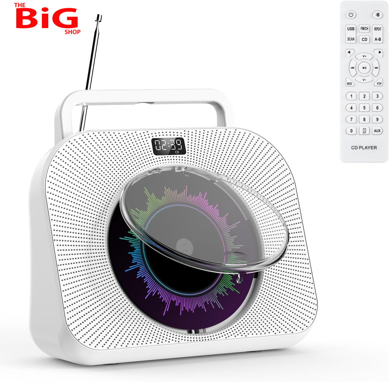 CD Player Portable, Bluetooth Desktop CD Player with Remote Control, Timer, Built-in Speakers, Stereo Sound MP3 CD Player for Home Outdoor (White)