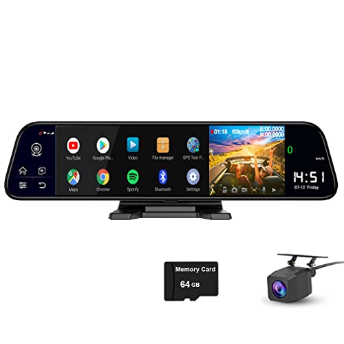 4G Car Dashboard Dash Cam Rear View DVR Android 8.1 Mirror with wifi GPS Navi Bluetooth music Dual Lens FHD (64GB SD Card Included)
