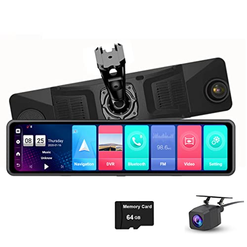 CarplayAndroid Auto Car Rear View Mirror Dash Cam 12 inch IPS Touch Full screen 4G RAM4GB+ROM64GB 5G Wifi GPS Navi Bluetooth remote monitoring Dual Lens FHD