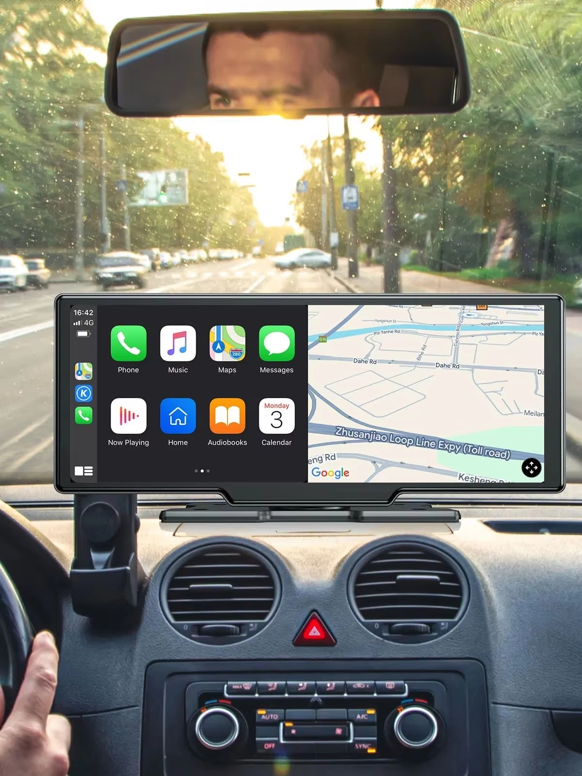 ESSGOO 10.26"4K 64G Portable Touch Screen Wireless Bluetooth Stereo CarPlay Android Auto Card Dual Lens Car Dash Cam FM AUX WIFI