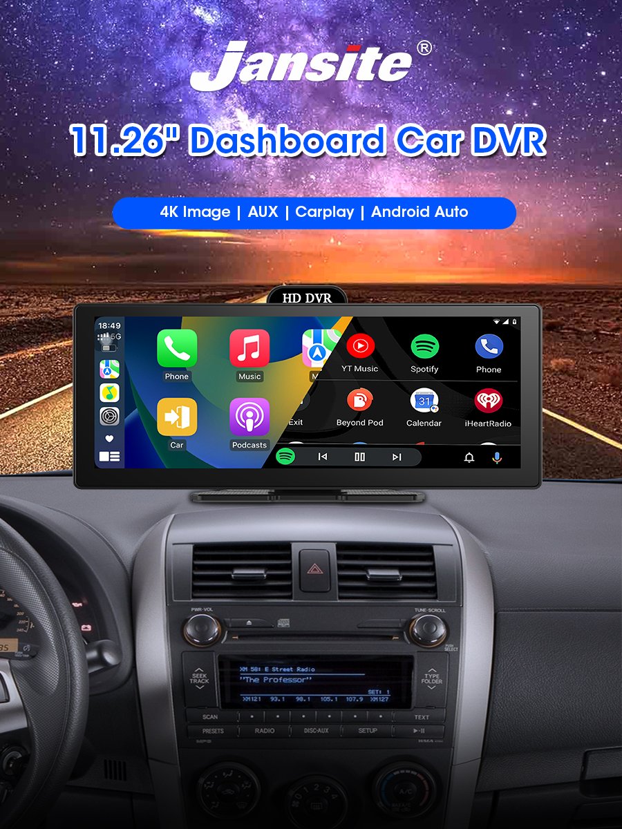 10.26"/11.26" 4K Dash Cam Wireless CarPlay&Android Auto Bluetooth Audio GPS Navigation Dashboard Dual Lens Video Recorder FM AUX